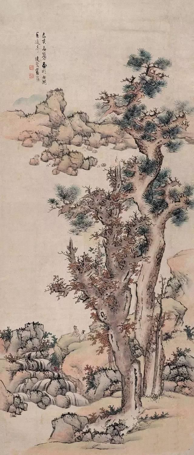 蓝瑛(1585-1664),一说(1585-约1666)明代画家。字田叔,人物画像号蝶叟,晚号石头陀、山公、万篆阿主者、西湖研民。又号东郭老农,所居榜额曰“城曲茅堂” 。钱塘(今浙江杭州)人。是浙派后期代表画家之一。工书善画,长于山水、花鸟、梅竹,尤以山水著名。其山水法宗宋元,又能自成一家。师画家沈周,落笔秀润,临摹唐、宋、元诸家,师黄公望尤为致力。晚年笔力蓊苍劲,气象峻,与文征明、沈周并重。