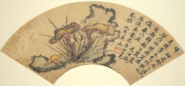 沈周《芝石图》作品介绍:泥金,纸本,设色;纵18.1厘米,横52.4 厘米;藏于中国台北故宫博物院。