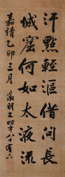 文徵明的《汗点城窟》作品 作者: 时间:09-12 浏览: 错误报告 文徵明《汗点城窟》 文徵明《汗点城窟》作品介绍:行书,纸本;纵60厘米,横22厘米;藏于中国台北故宫博物院。 文徵明《汗点城窟》释文:汗点轻汇借问长 城窟何如太液流 嘉靖乙卯三月 徵明书时年八十有六 延伸阅读: 文徵明的《野航图》作品文徵明的《渔梁红叶图》作品文徵明的《山水图》作品文徵明的《绿荫草堂图》作品文徵明的《登君山图》作品文徵明的《古柏图》作品文徵明的《松壑高逸图》作品文徵明的《玉兰图卷》作品文徵明的《江南春倡和图》作品文徵明的《溪亭消夏图》作品 标签: 上一篇:沈周的《溪山秋色图》作品 下一篇:沈周的《岸波图》作品 最新文章推荐 约翰·克里斯蒂安·达尔(Johan Chri 朱利安·杜佩(Julien Dupré)作品-Ha 弗雷德里克·埃德温·丘奇(Frederic 克洛德·莫奈(Claude Monet)高清作品 克洛德·莫奈(Claude Monet)作品《戴 清 王翚《良常山馆图》 纸本高清作 留言与评论(共有 条评论) 验证码: