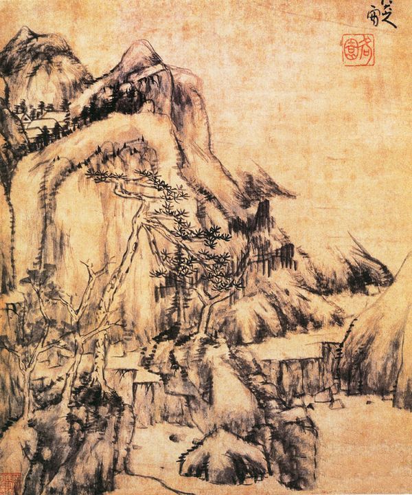 朱耷的《山水图》作品 作者: 时间:09-12 浏览: 错误报告 朱耷《山水图》 朱耷《山水图》作品介绍:纸本,水墨,册页;纵54厘米,横46厘米;藏于上海博物馆。 朱耷《山水图》:此作描绘的是山峦石壁,老树横枝,溪流人家。境界幽旷,用笔姿意,画面显得奔放苍健。 延伸阅读: 朱耷的《彩笔山水图》作品朱耷的《山水通景图》作品朱耷的《猫石花卉图》作品朱耷的《鸭图》作品 标签: 上一篇:朱耷的《彩笔山水图》作品 下一篇:严绳孙的《山径平岗图》作品 最新文章推荐 约翰·克里斯蒂安·达尔(Johan Chri 朱利安·杜佩(Julien Dupré)作品-Ha 弗雷德里克·埃德温·丘奇(Frederic 克洛德·莫奈(Claude Monet)高清作品 克洛德·莫奈(Claude Monet)作品《戴 清 王翚《良常山馆图》 纸本高清作 留言与评论(共有 条评论) 验证码: