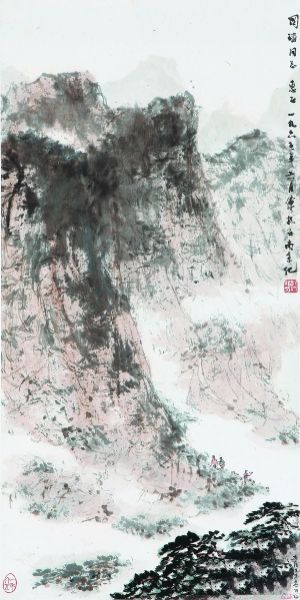 《井冈山》 傅抱石《井冈山》创作于1965年6月,其上款人为原中国人民志愿军第39军115师副参谋长,上海科学院副院长程国 。后转赠于著名画家姚有信。姚有信(1935-1995),浙江杭州人,久居上海,毕业于浙江美术学院,擅长人物画和连环画。曾为中国美术家协会会员、上海美协会员、上海中国画院画师、上海人民美术出版社专职画家,后调北京工作,任中央美术学院教授、国画系主任、全国政协委员;1981年起旅居美国,任宾夕法尼亚大学艺术学院客座教授,并转向油画肖像创作,出版《姚有信画集》。