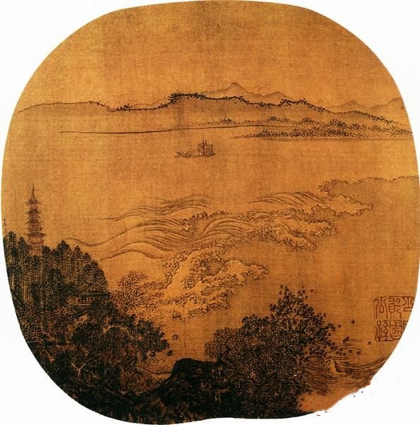 图集说明:夏圭《钱塘秋潮图》国画(南宋)