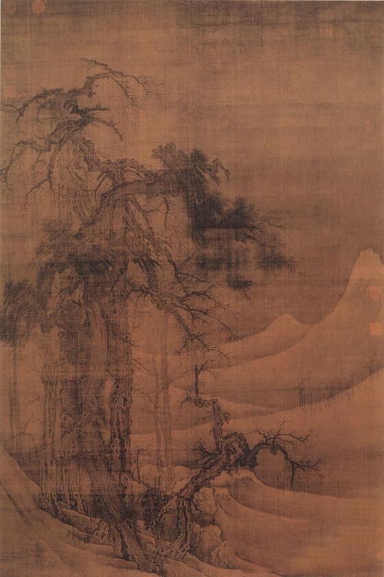 《寒林图》简介:绢本,立轴,墨笔;纵153厘米,横98.8厘米;藏于中国台北故宫博物院。
