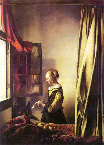 荷兰民俗中喜欢写情书和读情书,由于北欧的气候缺少光照,所以风俗画家为迎合大众的生活习俗和审美追求,常常选择在充满阳光的室内环境中读写情书的题材。