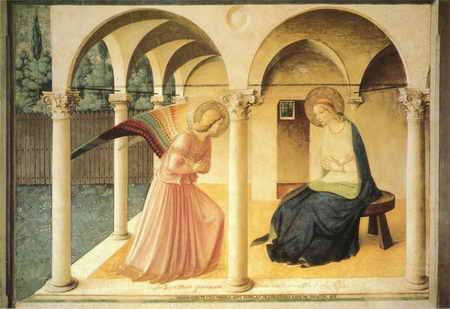 受胎告知 安杰利柯 1440-1450年 230×321厘米 湿壁画 现藏佛罗伦萨圣马可博物馆