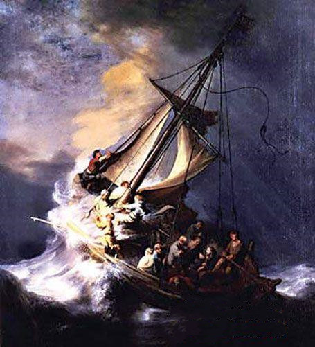 伦勃朗作品《加利利海风暴》 作者: 时间:07-26 浏览: 错误报告 伦勃朗作品《加利利海风暴》 荷兰画家伦勃朗一生画了不少宗教题材的名画,他在1633年创作的《加利利海的风暴》就是其中的一幅。《圣经》提到,耶稣和门徒一同上船横渡加利利海,海上起了风暴,波浪打入船内,船几乎要满了水。耶稣在船尾睡觉,门徒摇醒他,耶稣斥责风和海,风和海就止住了。 延伸阅读: D. Jeffrey Mims 油画作品前1000幅世界名画-《蓝衣女子的肖像科》普利 美国凡杜斯堡作品《构图》雅克・约瑟夫・提索特作品《春》前1000幅世界名画-弗朗西斯科・戈雅作品《伊莎贝尔・委拉士贵支作品《教皇英诺森十世像》夏尔丹作品《吹肥皂泡的少年》伊萨克.伊里奇.列维坦作品《深渊》别娜金作品《钓鱼》什夫纤科作品《泽》 标签:作品 上一篇:前1000幅世界名画-“长廊” 皮埃尔-奥古斯特·雷诺阿 下一篇:前1000幅世界名画-《尼罗河传说》 保罗·克利 最新文章推荐 约翰·克里斯蒂安·达尔(Johan Chri 朱利安·杜佩(Julien Dupré)作品-Ha 弗雷德里克·埃德温·丘奇(Frederic 克洛德·莫奈(Claude Monet)高清作品 克洛德·莫奈(Claude Monet)作品《戴 清 王翚《良常山馆图》 纸本高清作 留言与评论(共有 条评论) 验证码: