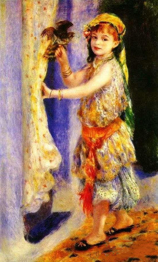 雷诺阿《手擎隼的女孩》简介:画布,油彩;纵126厘米,横78厘米;作于1880年;藏于威廉斯顿斯特林和佛朗辛·克拉克艺术学院。