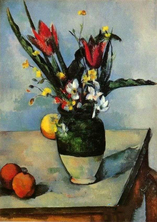 塞尚《一瓶郁金香》简介:画布,油彩;纵78厘米,横42厘米;作于约1890年;藏于美国芝加哥美术学院。