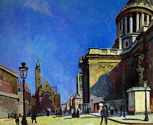 杜菲《万圣殿和圣艾蒂安》简介:外文名Le Pantheon et Saint - Etiee - du - Mont;画布,油彩Oil on canvas;纵不详,横不详;作于1906年;藏于美国纽约水牛城公共美术馆Albright-Knox Art Gallery, Buffalo, NY。