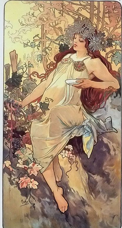 阿尔丰斯·穆夏【四季-秋】 作品尺寸:28x14.5 作品材质:纸面水彩画 watercolour on paper 现收藏于:不详