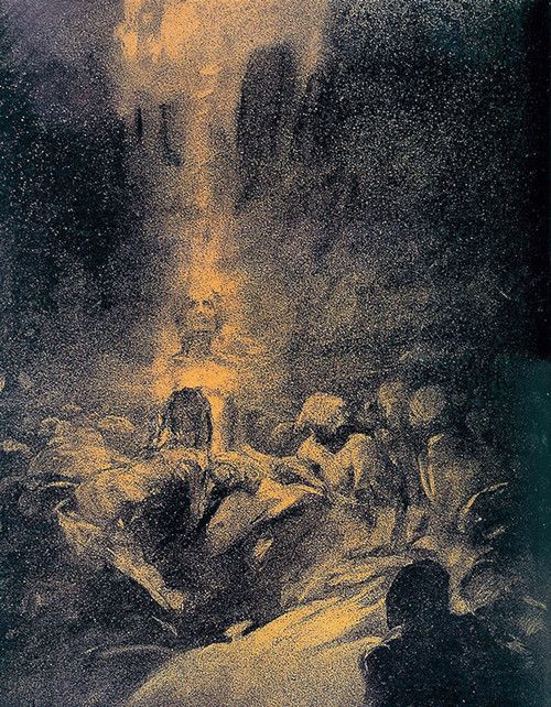 阿尔丰斯·穆夏【向主祈祷请主从天国降临这里插图】简介:作品尺寸:31x25 作品年代:1899 作品材质:纸面铅笔炭笔画 graphite and charcoal on paper 现收藏于:不详