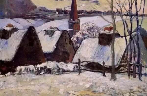 保罗·高更【雪中的布列塔尼村庄】简介:作品尺寸:62 &time 87 厘米 作品年代:1894 作品材质:布面油画现收藏于:不详