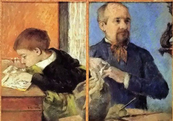 保罗·高更【雕刻家沃贝与儿子】简介:作品尺寸:53 &time 72 cm 作品年代:1882 作品材质:粉彩 , 纸现收藏于:不详
