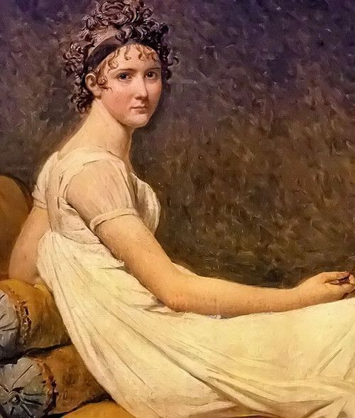 雅克-路易·大卫【雷卡米耶夫人像(局部)】:《雷卡米耶夫人的肖像》是新古典主义学院派画家雅客-路易·大卫在1805年绘制的一幅画布油画,原作尺寸是225cm X l48cm,现收藏于巴黎卡那维特美术馆。