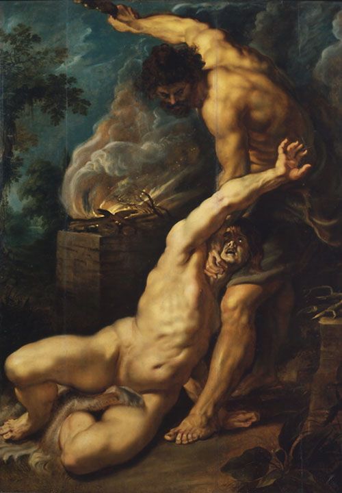 鲁本斯《该隐杀害亚伯》简介:外文名 Cain slaying Abel;画板,油彩 oil on panel;纵131.2厘米,横94.2厘米;作于1608年;藏于英国伦敦可陶德学院画廊 Courtauld Ititute Galleries, London。