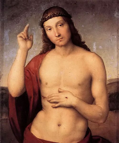 拉斐尔【基督祈福】简介:作品尺寸:25x30 作品年代:c1506 作品材质:木板油画 oil on wood 现收藏于:不详