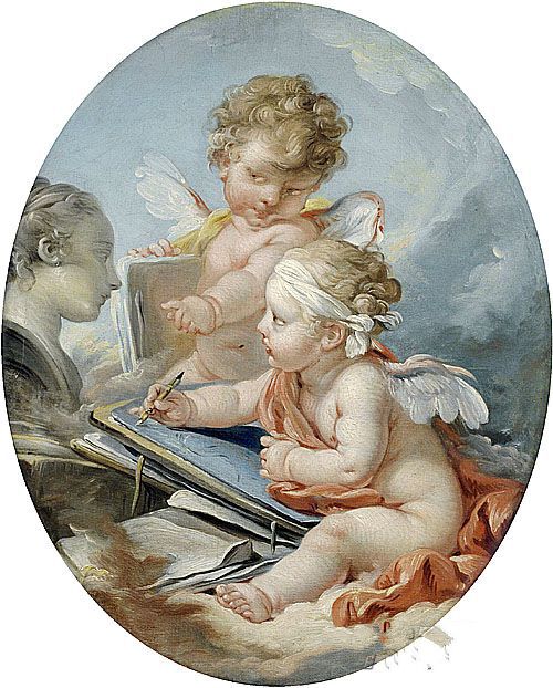 布歇《绘图》作品介绍:外文名Drawing;画布,油彩oil on canvas;纵40厘米,横32.7厘米;作于不详;藏于私人弗立克美术图书馆 The Frick Collection, New York。