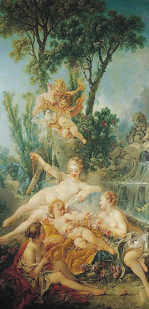 布歇作品介绍:全名弗朗索瓦·布歇,外文名Francois Boucher,生于1703年,卒于1770年;法国画家、版画家和设计师,曾任法国美术院院长、皇家首席画师。出版过《千姿百态》画册。他是洛可可艺术的代表人物之一,他将洛可可艺术的风格发挥到了极致。布歇出生于法国巴黎,其父亲为一位图案画家。从少年时代受父亲的教育,是个极其早熟的人,二十岁时就获得美术院展览会的一等奖。他曾到意大利留学四年,回巴黎声名大振,受到当时贵妇人们的沙龙的接待。后来,布歇才能被路易十五世的情人蓬帕杜夫人所赏识,画了几幅她的肖像画。布歇的作品多是为迎合当时的贵族而作,故与其他著名画家相比,多了一份装饰性,少了一份人情味。