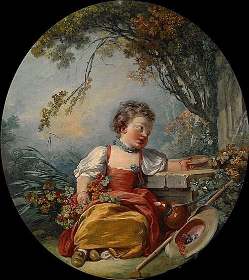布歇《小朝圣者》作品介绍:外文名The Little Pilgrim;画布,油彩oil on canvas;纵81.3厘米,横76.2厘米;作于1755 - 1760 年;藏于美国印地安纳波利斯美术馆 Indianapolis Museum of Art, Indianapolis。