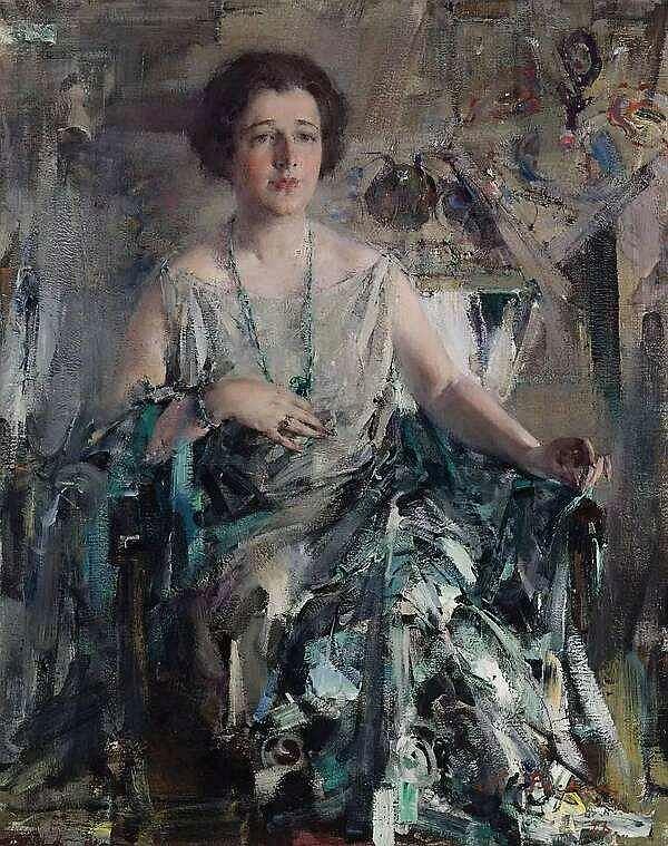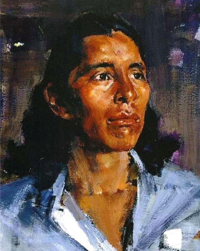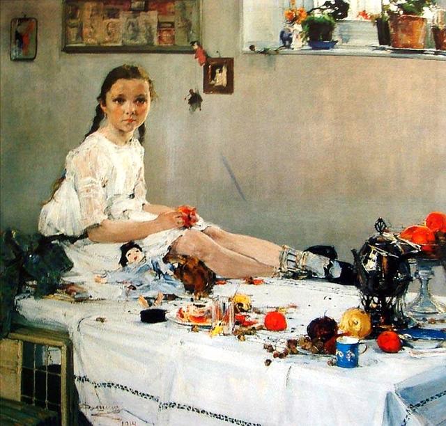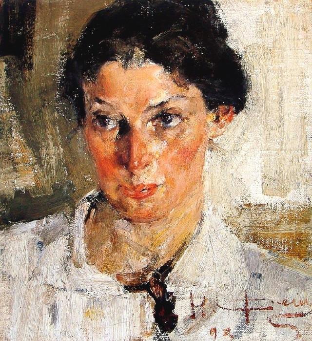 尼古拉费欣,(1879--1955)俄裔美籍画家,出生于俄罗斯喀山的木雕手艺人家庭,是俄罗斯油画大师列宾最为赞许的学生,称他为天才,就其绘画的艺术性而言,完全可以和列宾并列,一点也不逊色。费欣在美国走完了他的艺术之路。他远离故土,脱离民族传统,对他来说无疑是场悲剧,但他的艺术成就在俄罗斯美术史上有着不可磨灭的地位。他的画继承俄罗斯油画传统基础上,创造出了自己独特的艺术风格和表现手法,他那散发着光彩的技巧,带有激情短促的笔触和多层次粗糙的表现是他长期艺术积累的结晶。费欣擅长肖像画和风俗题材的创作。他用笔奔放、流畅,画面时而是颜色强有力的堆积,时而用刮刀和手代笔,使画面产生不同的肌理效果,画面色彩响亮、饱和,对比强烈鲜明,好象一部色彩浓厚的交响曲,让人迷恋于画中,耐人寻味。