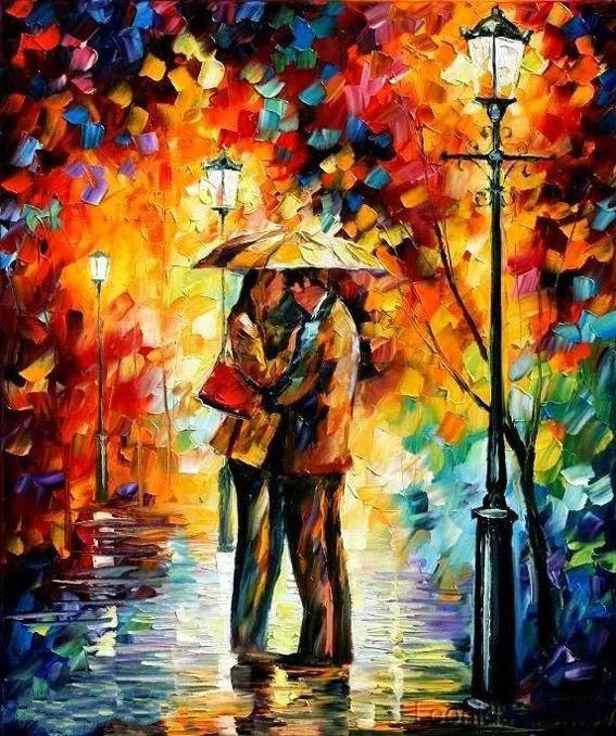 李奥尼德·阿弗莱莫夫(leonid afremov 1955- ),白俄罗斯画家。生于白俄东部的维帖布斯克城,毕业于该地同名艺术大学,这所大学是由著名的现实主义画家马克·夏加尔创办的,惹眼的是合伙人中的名字——超感性主义(Suprematism)的创始人马勒维奇(Malevich)和抽象派画家瓦西里·康丁斯基(Wassily Kandinsky)(1866-1944)。在那个令人烦恼的年代,Leonid Afremov发现只有共产主义题材海报才能在苏联卖得掉,在1990年他只得去以色列发展,2周内他在那里找到一份广告公司制作户外广告的差事。交货前夕,这个倒霉的人的工作室被抢占并毁坏了,而后他移居美国,现居佛罗里达州。