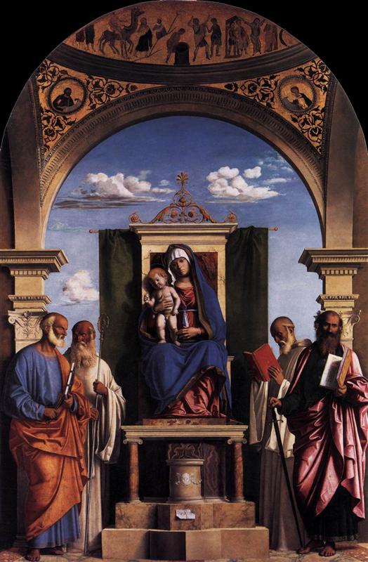 西玛·达·科内利亚诺(Giovanni Battista Cima ,意大利)作品-麦当娜和圣徒登基的孩子