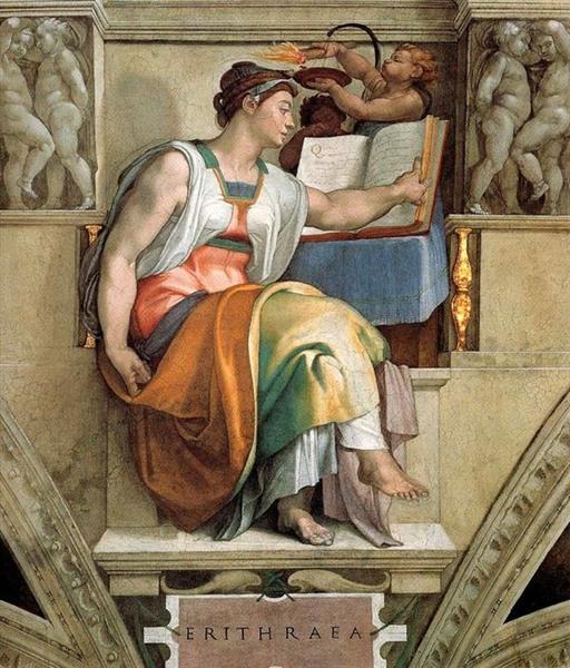 米开朗基罗(Michelangelo)作品-西斯廷教堂的天花板。西比尔