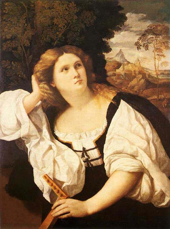 帕尔玛·韦基奥(Palma Vecchio)高清作品-戴琵琶的女士