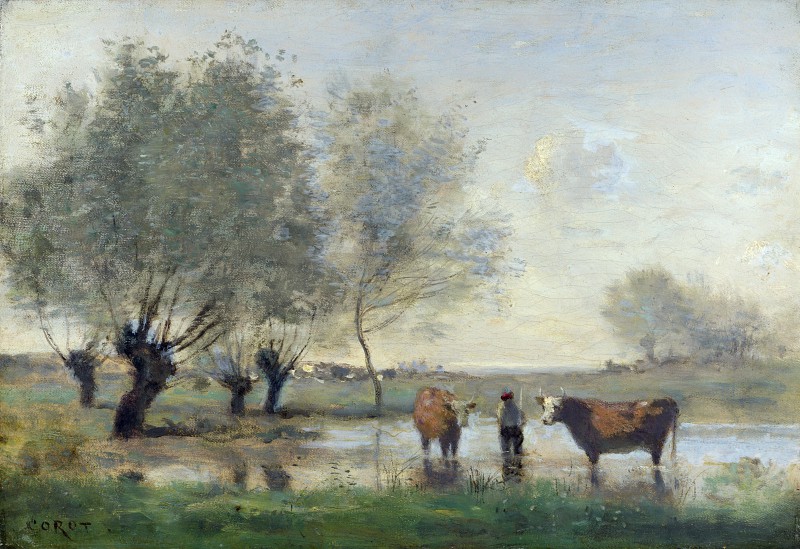 简介: 尚·巴蒂斯特·卡米尔·柯罗(Jean-Baptiste Camille Corot)–沼泽景观中的母牛