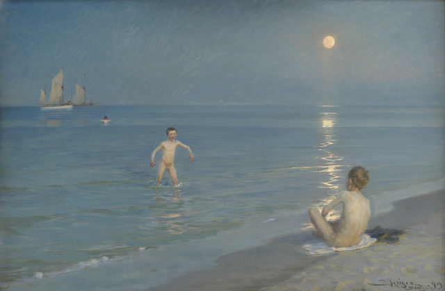 简介: 佩德·瑟夫林·柯罗耶(Peder Severin Kroyer)-夏天的夜晚,在斯卡恩洗澡的男孩