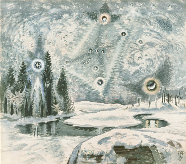 简介: 美国画家查尔斯·埃弗赖姆·伯奇菲尔德(Charles Ephraim Burchfield)-冬季猎户座 1962年水彩作品。 查尔斯·埃弗拉伊姆·伯奇菲尔德(CharlesEphraimBurchfield,1893-1967年),美国画家。他的作品大多是水彩画,有描绘中西部小镇的风光的,如《六点钟》与《老房子与榆树》,也有充满想象力的水彩风景画,如《春天来临》与《五月下旬的正午》。