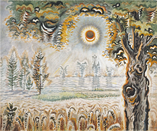 简介: 美国画家查尔斯·埃弗赖姆·伯奇菲尔德(Charles Ephraim Burchfield)-七月干旱太阳 1949年-1960年水彩。