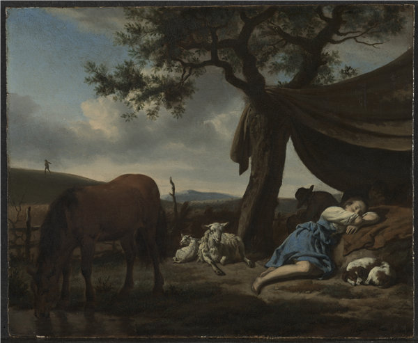 简介: 阿德里安·范·德·维尔德(Adriaen van de Velde,荷兰,1636-1672)-沉睡的牧羊人,1663年。