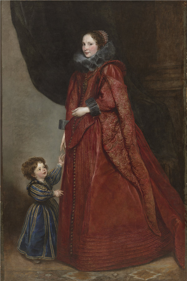这件名为“热那亚女士和她的孩子”的艺术品由杰出艺术家安东尼·范·戴克 (Anthony van Dyck) 创作,他因对巴洛克艺术运动的贡献而闻名。肖像画是这件作品所归类的类型,捕捉人类主体的面容和存在,特别强调对坐者的性格和社会地位的表达。