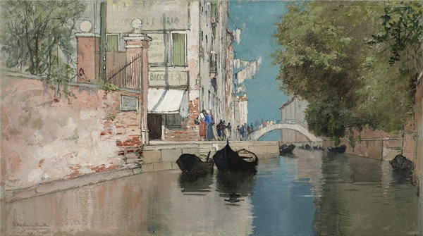 简介: 弗朗西斯·霍普金森·史密斯 (Francis Hopkinson Smith)-在去公共花园的路上粉彩