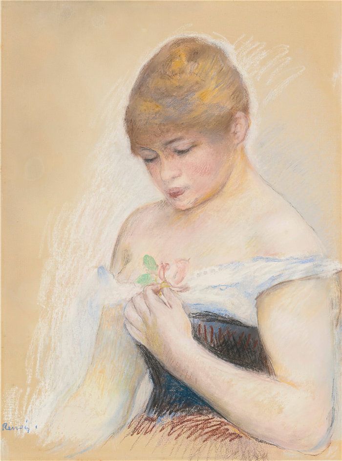 简介: 皮埃尔·奥古斯特·雷诺阿(Pierre-Auguste Renoir)作品 –Jeune Femme Tenant Une Fleur (Portrait De Jeanne Samary)《手持鲜花的年轻女子(珍妮·萨马里肖像)》(大约 1879-80 年)