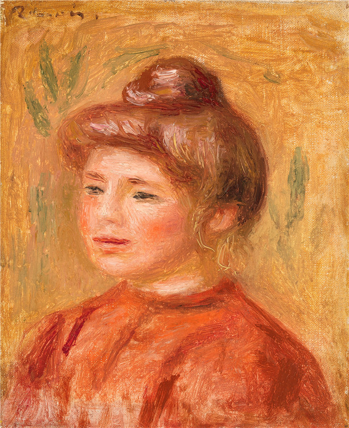 简介: 皮埃尔·奥古斯特·雷诺阿(Pierre-Auguste Renoir)作品 –红衣女子半身像(Buste de femme en rouge)(1905–1908)