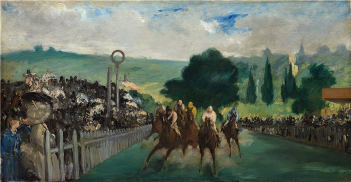 简介: 爱德华·马奈(Édouard Manet,法国画家)作品 –Longchamp 的比赛(1866 年)