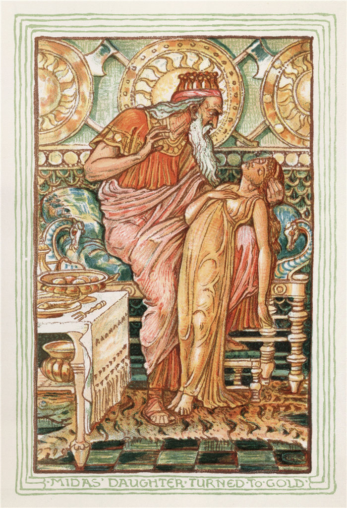 简介: 沃尔特·克兰 (Walter Crane,英国画家) 作品 -迈达斯的女儿变成了黄金 (1893)