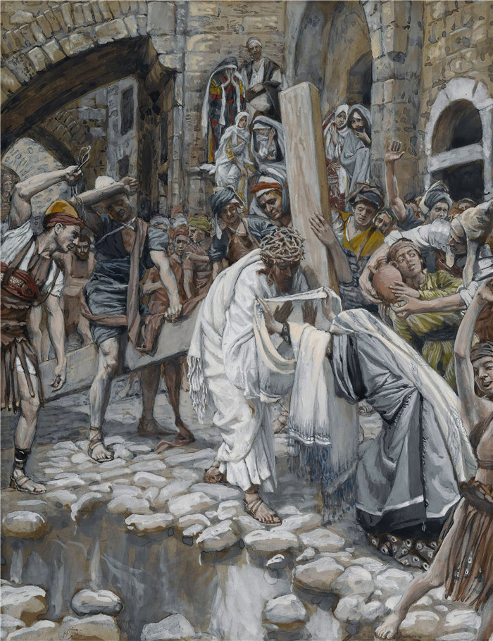 简介: 詹姆斯·天梭(James Tissot,法国画家)作品-一位圣洁的女人擦拭耶稣的脸(1886-1894)