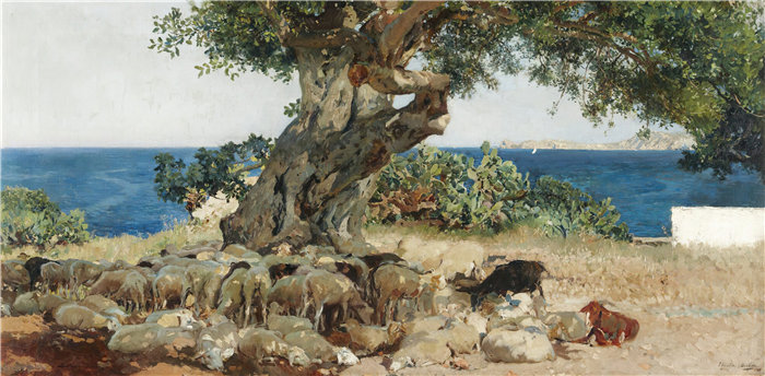简介: 华金·索罗拉(Joaquin Sorolla,西班牙画家)作品-阿尔加罗博(角豆树)(1899)