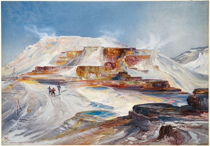 简介: 托马斯·莫兰 (Thomas Moran,美国画家)作品-黄石加德纳河温泉(约 1875 年)