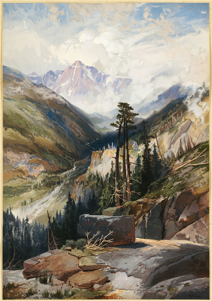 简介: 托马斯·莫兰 (Thomas Moran,美国画家)作品-科罗拉多州圣十字山(约 1876 年)