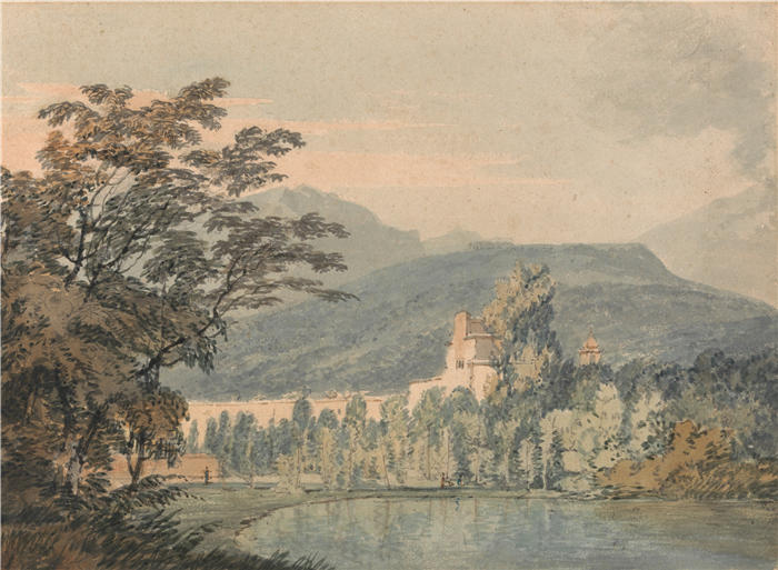 简介: 约瑟夫·马洛德·威廉·特纳(Joseph Mallord William Turner,英国画家)高清作品下载-《威廉汉密尔顿爵士的别墅(约 1795 年)》