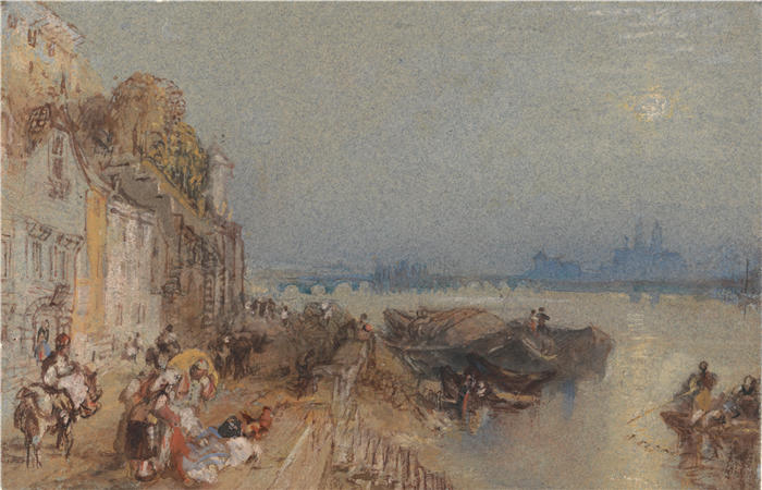 简介: 约瑟夫·马洛德·威廉·特纳(Joseph Mallord William Turner,英国画家)高清作品下载-《游览:日落 - 向后看(1826 年至 1830 年之间)》