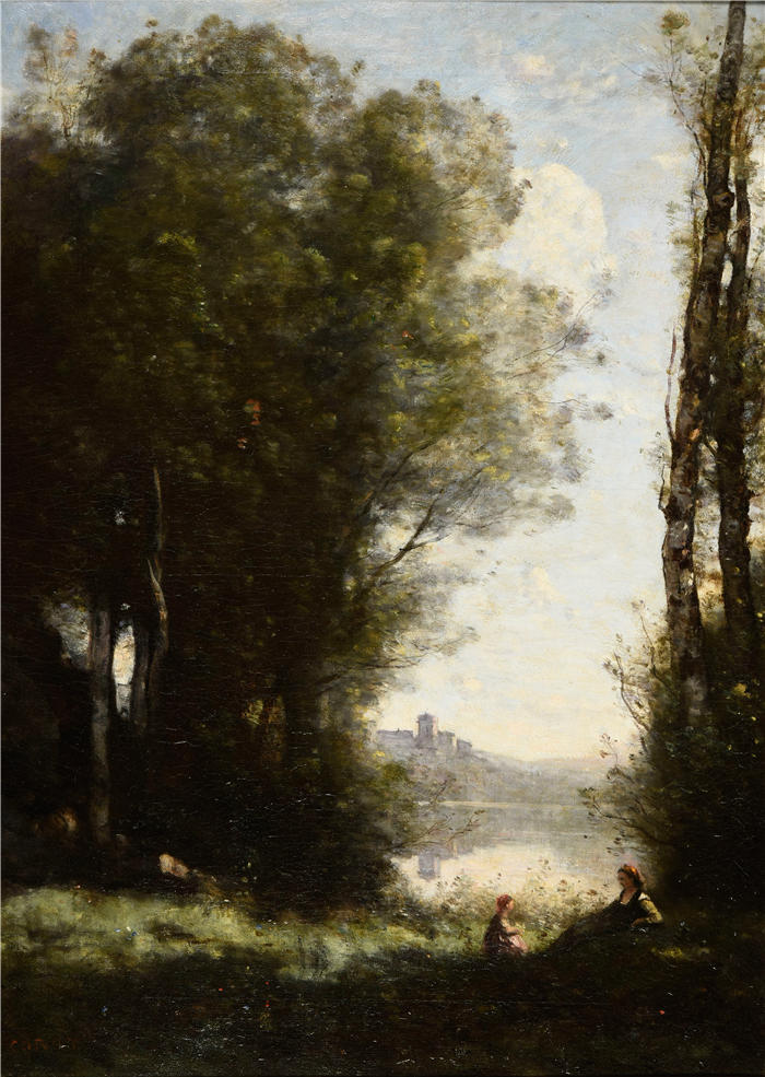 简介: 让·巴蒂斯特·卡米尔·柯罗(Jean-Baptiste-Camille Corot,法国画家)高清油画-《湖边树下的两姐妹(1865-1870)》