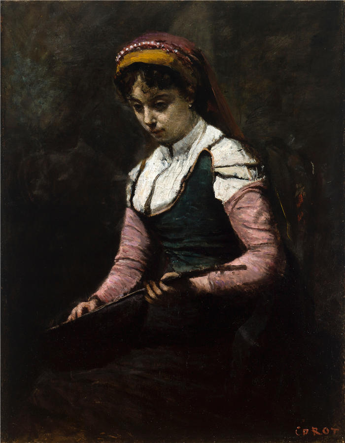 简介: 让·巴蒂斯特·卡米尔·柯罗(Jean-Baptiste-Camille Corot,法国画家)高清油画-《曼陀林女孩(1860–65)》