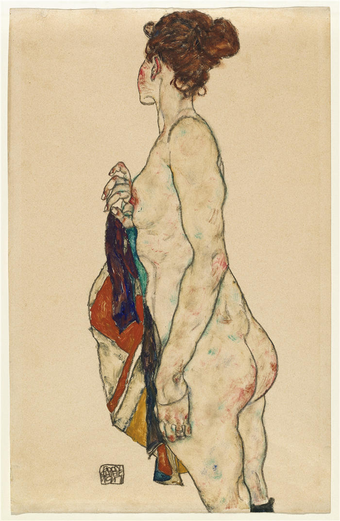 简介: 埃贡·席勒( Egon Schiele,奥地利画家)高清作品-《穿着带图案长袍的站立裸体(1917)》