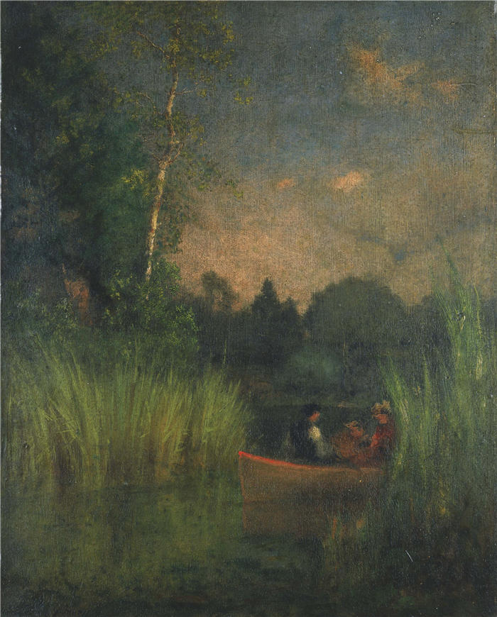 简介: 乔治·英尼斯 (George Inness,美国画家)高清油画作品-《匆忙中的黄昏(亚历山大湾)》