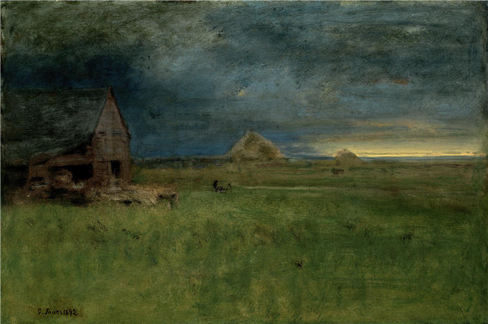简介: 乔治·英尼斯 (George Inness,美国画家)高清油画作品-《孤独的农场,楠塔基特 (1892)》